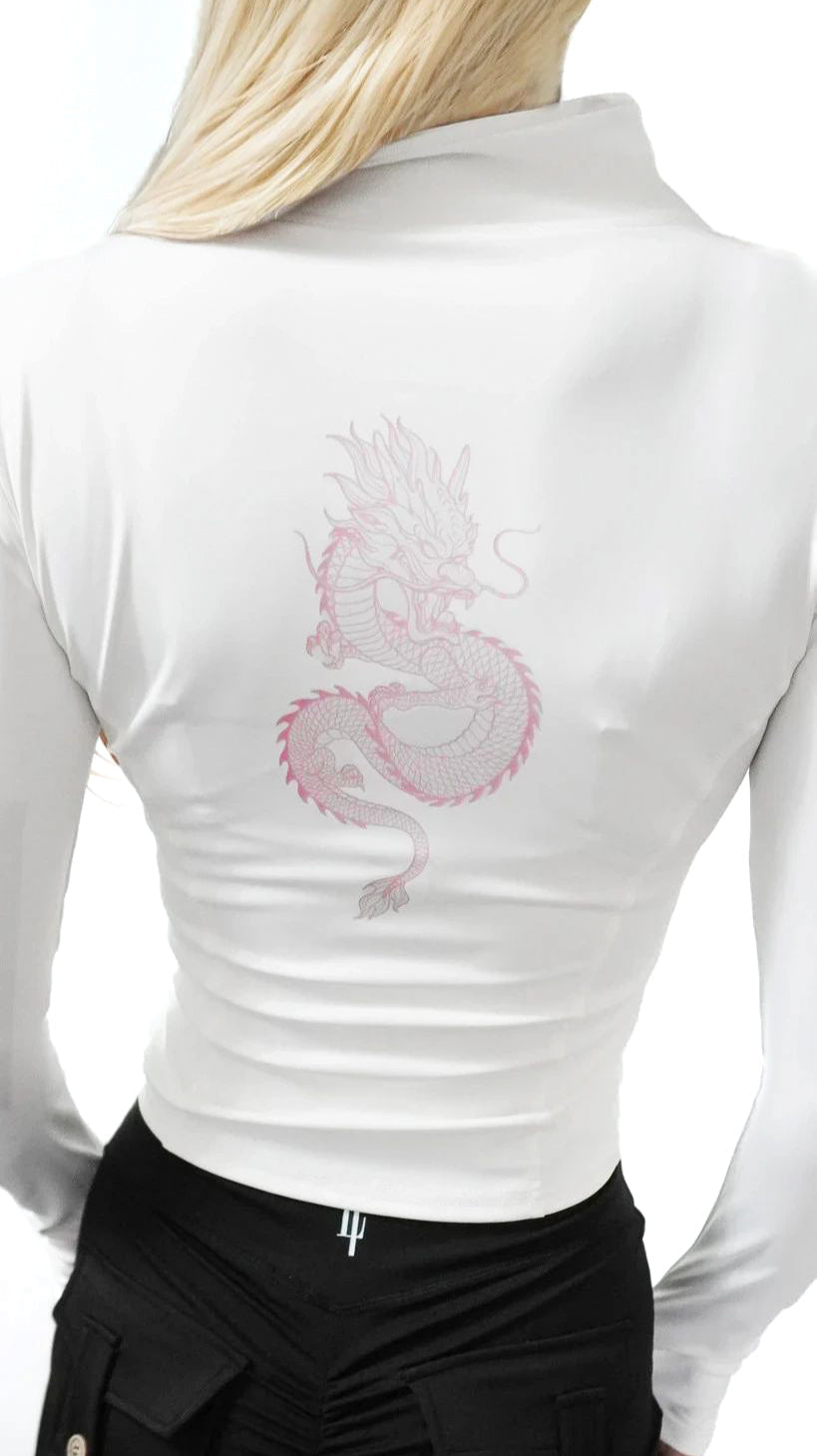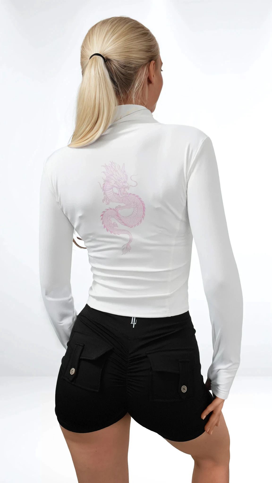 Diese weiße Jacke mit dem legendären rosa "Candy Dragon"-Druck auf der Rückseite ist perfekt für den super cuten Style. Die langen Ärmel und das elastische Material sorgen für Bewegungsfreiheit und eignen sich ideal für den Sport, aber auch für den Alltag. Ein absolutes Must-Have.