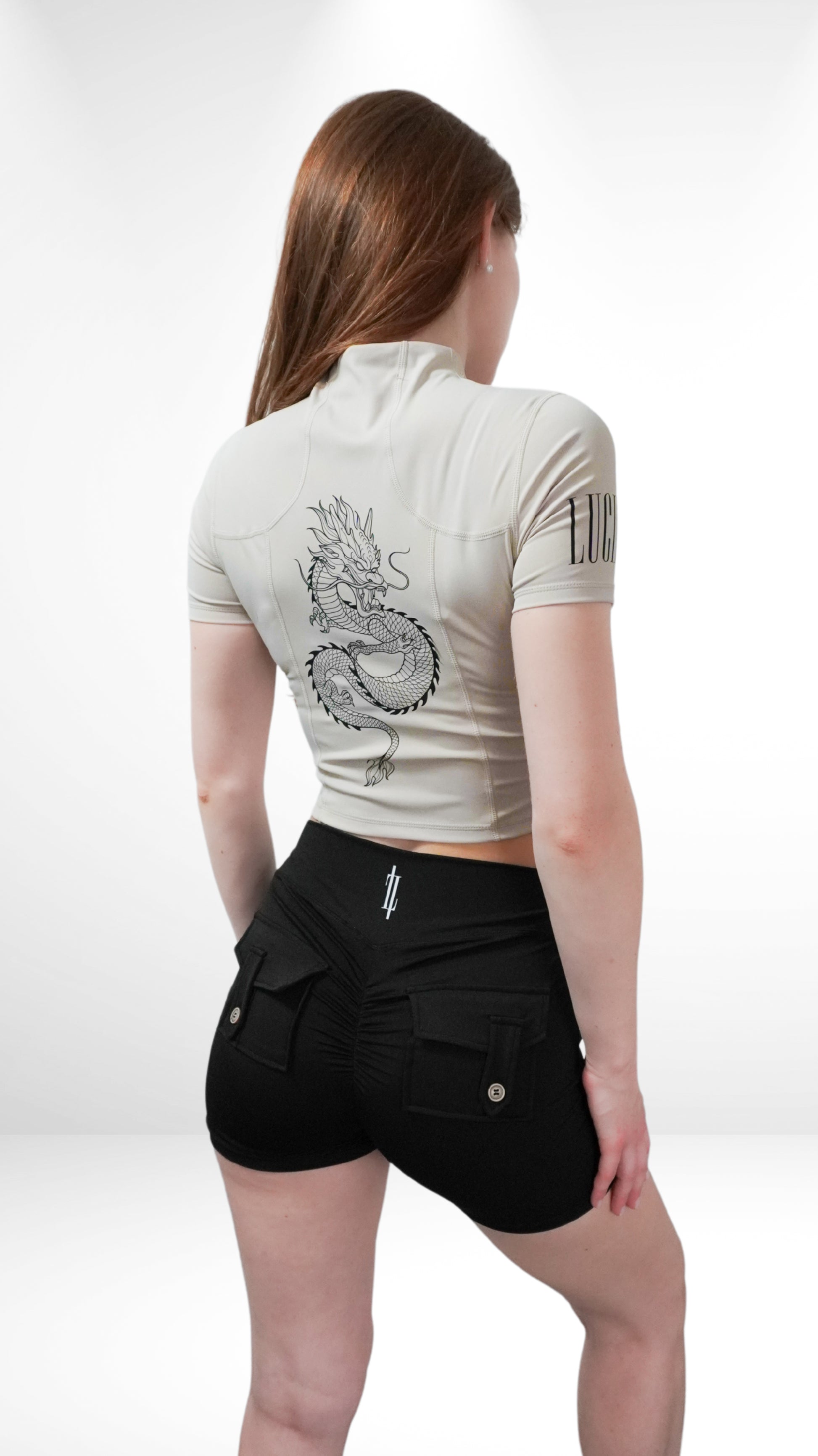 Diese cropped kurzarm Jacke bietet den besten Materialmix für den Sport oder den täglichen Style. Mit dem detailreichen, super edgy Drachendesign ist sie ein echter Eyecatcher. Ein samtig weiches Tragegefühl und eine perfekte Passform erwarten dich.