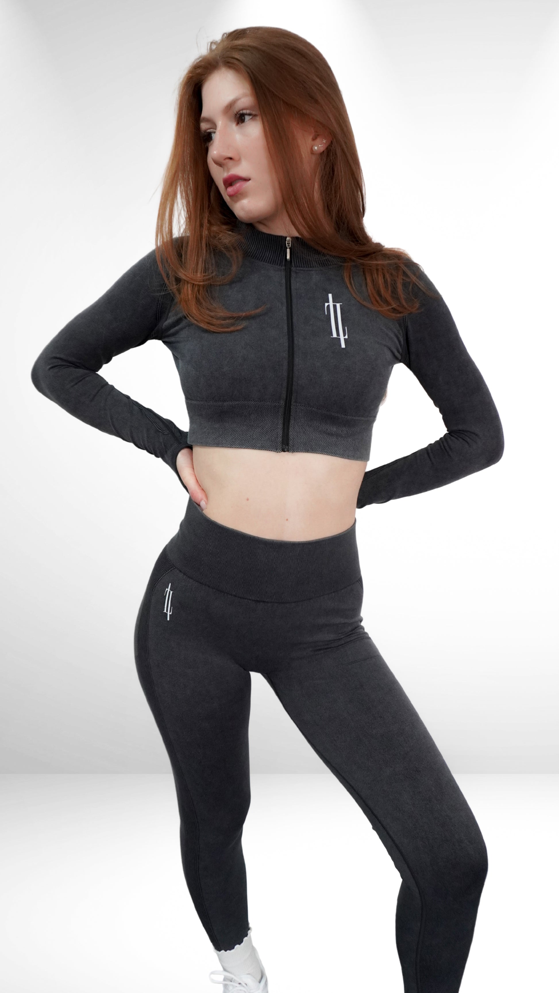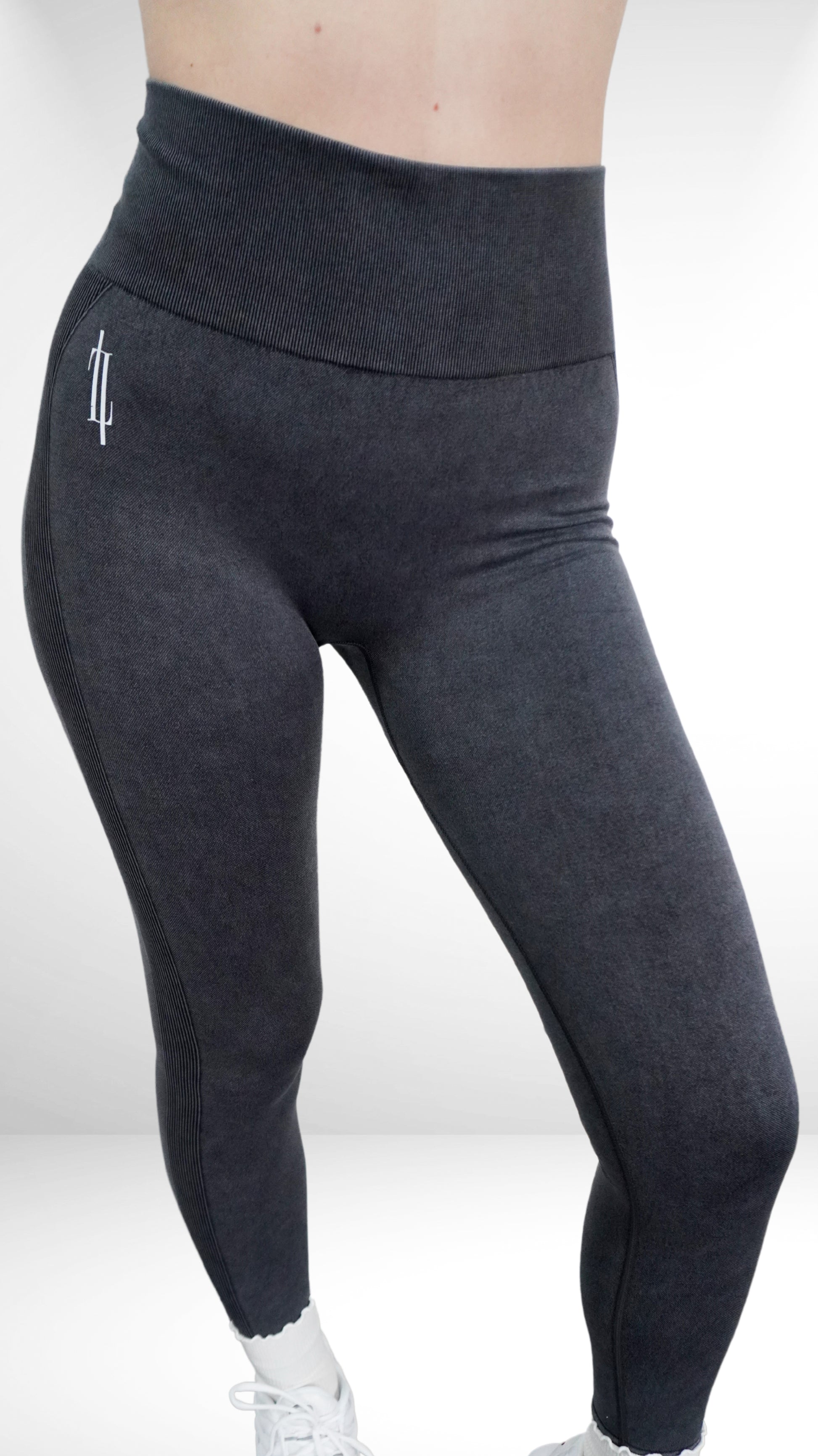 Hochwertige, graue Leggings mit kleinem Print auf der Hüfte, hohem Bund und perfekter Passform. Die Scrunch-Details verleihen einen sexy Touch. Mit diesen Leggings bist du für jede Aktivität bereit.